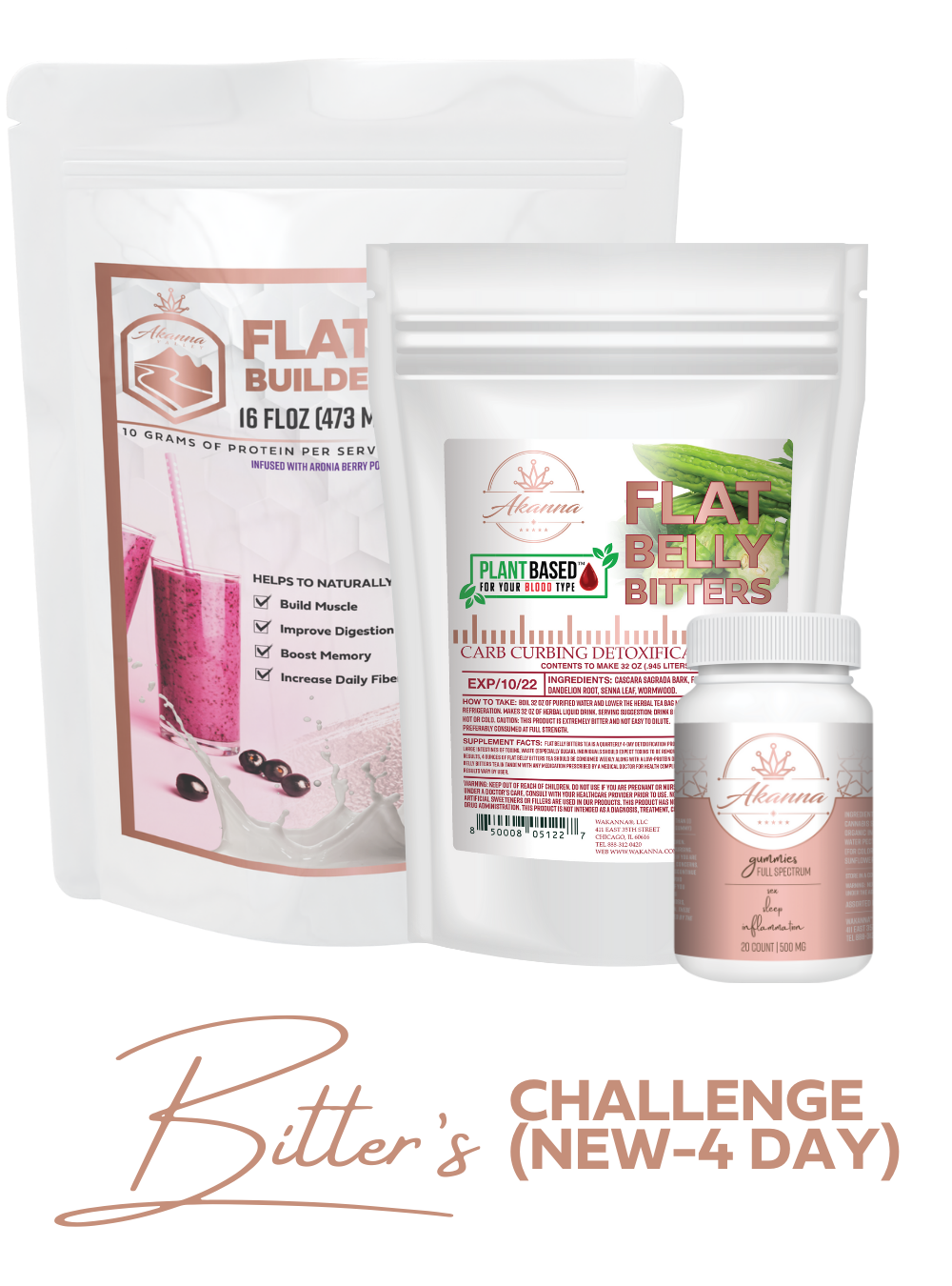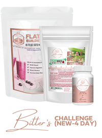 Introducing our new 4-Day Bitters Challenge! This kit includes Bitters, Gummies, and the all-new Flat Belly Builder protein. It's a fantastic way to cleanse your body while boosting muscle growth with high-quality protein.